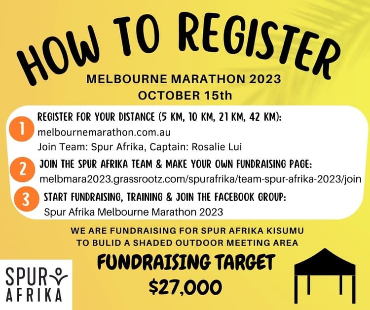 We are excited to launch our new campaign, Spur will have a team in the upcoming Melbourne Marathon. All the funds will go to building a shaded outdoor area or Kisumu. You can participate in many ways!